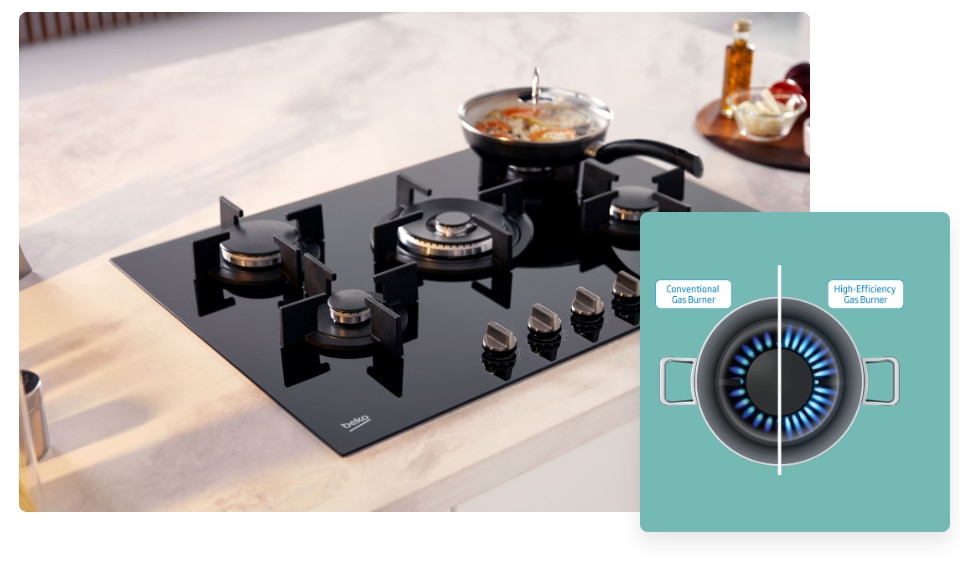 |  | High Efficiency Gas Burner Gatire mai rapida si mai eficienta cu un design special al arzatorului Arzatoarele cu eficienta ridicata de la Beko iti vor oferi momentul de magie de care ai nevoie atunci cand te grabesti. Timpul petrecut in bucatarie va scadea considerabil, iar tu vei putea astfel gati mult mai economic si mai repede. |