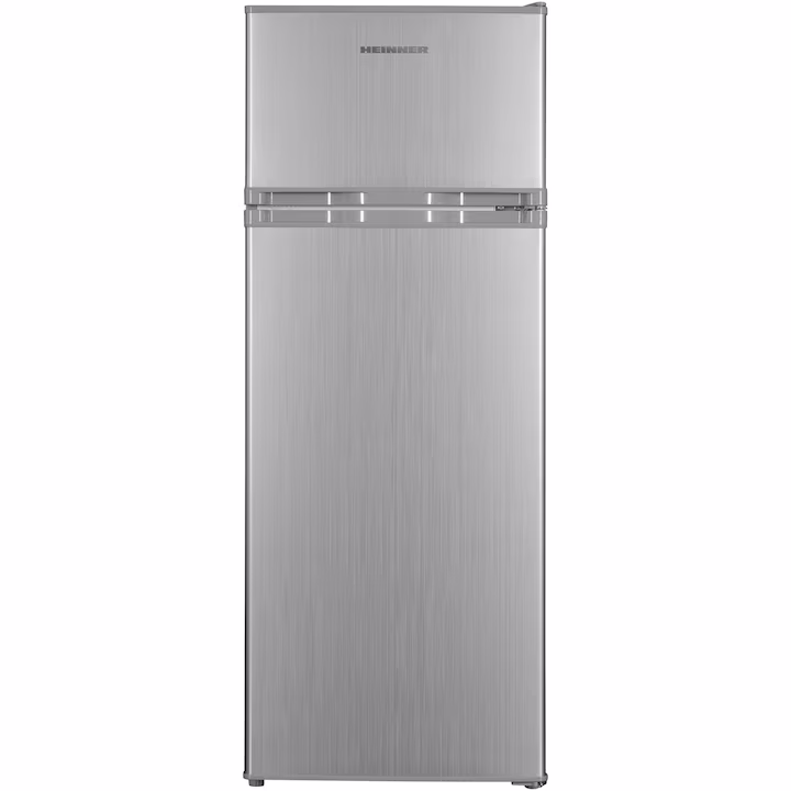 Frigider cu doua usi Heinner HF-H2206SE++, 206 l, Clasa E, lumina LED, 3 rafturi de sticla, H 143 cm, Argintiu