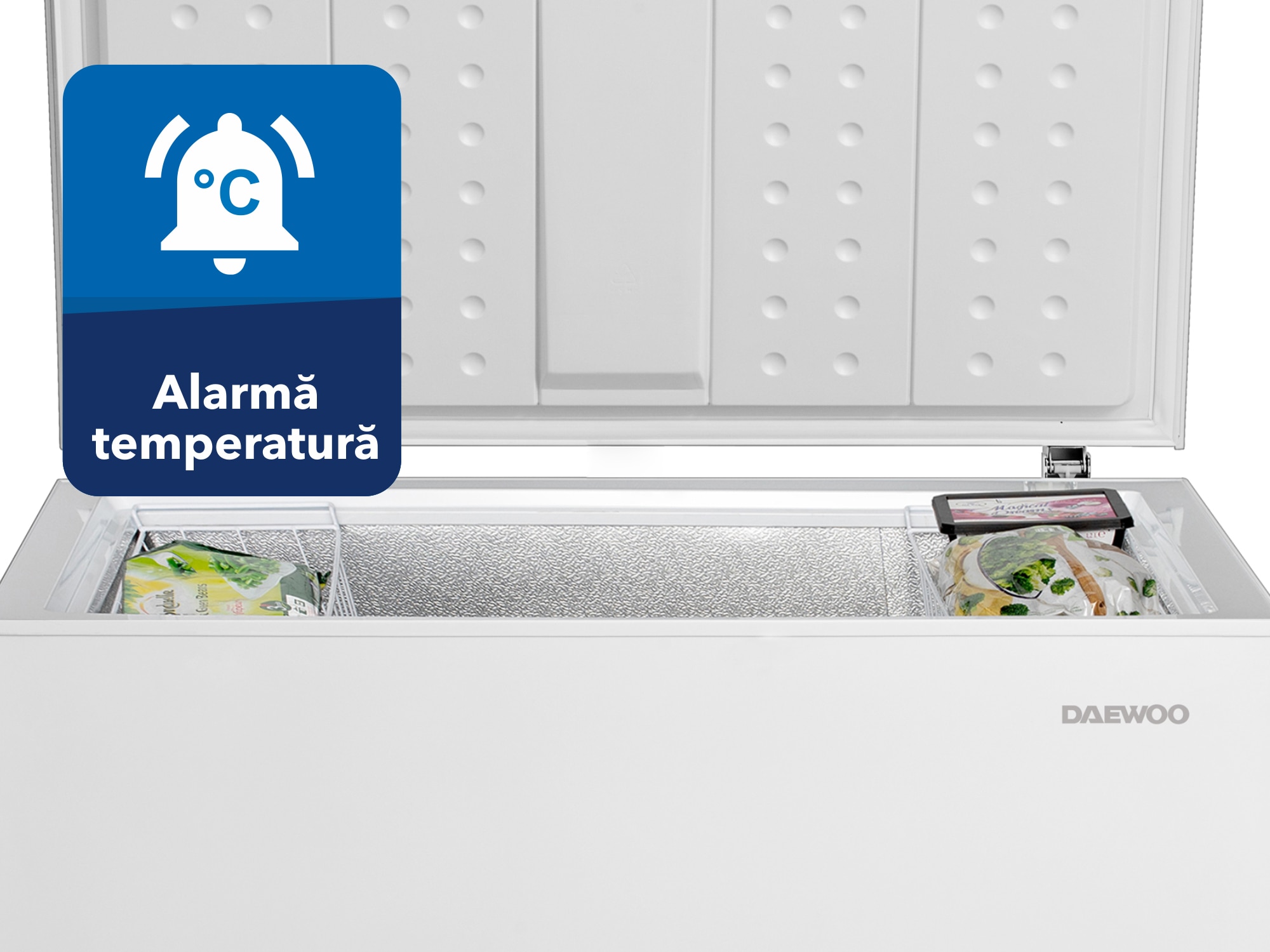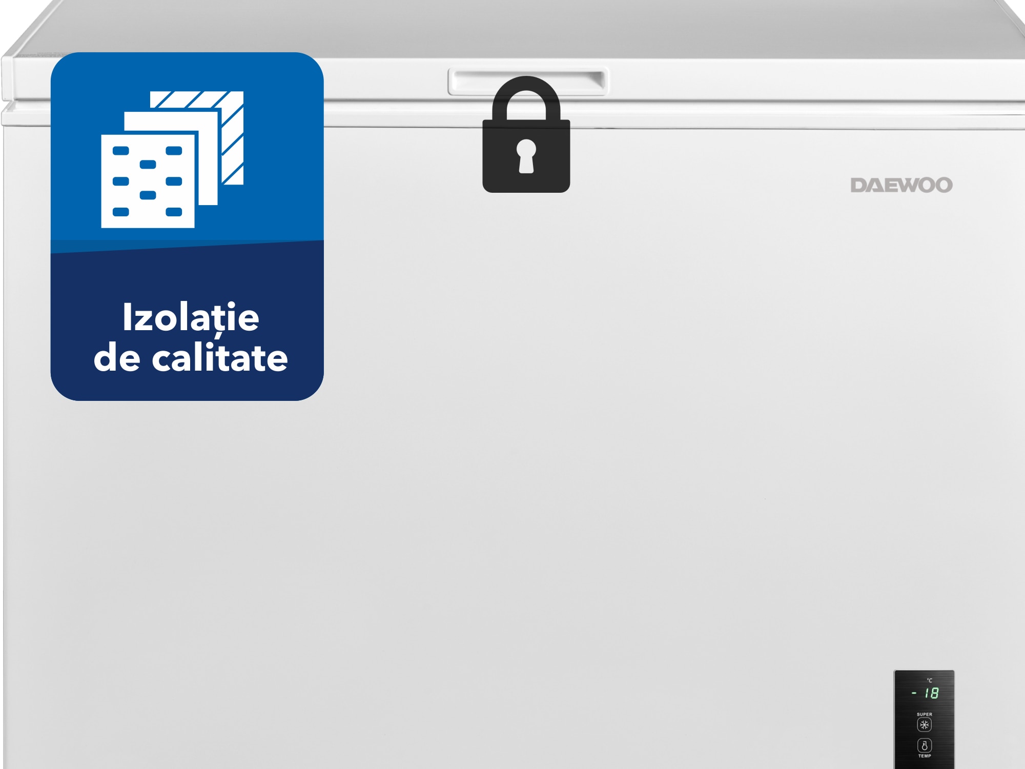 O lada frigorifica este o inventie minunata pentru mentinerea alimentelor in siguranta pentru consum, plus ca te ajuta sa organizezi mai bine proviziile. Lada frigorifica Daewoo este gandita sa-ti ofere mai mult spatiu de depozitare a alimentelor care necesita congelare si este dotata cu functii precum Super Freeze, control electronic si control temperaturi. Lada frigorifica este potrivita pentru depozitarea carnii, a pestelui, a legumelor si a altor alimente care nu vor fi consumate intr-o perioada scurta de timp